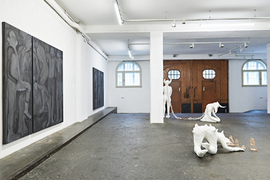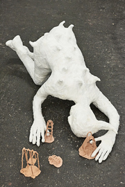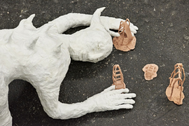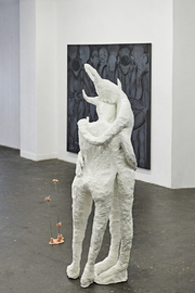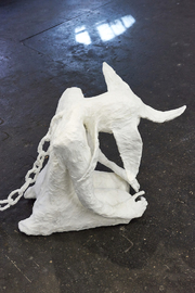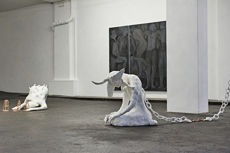 Gentle Creatures is a series of human-scaled sculptures made from cotton wool; a material rooted in Eastern European toy-making traditions and historically tied to the utilitarian jackets, the padded uniform of the Soviet proletariat.