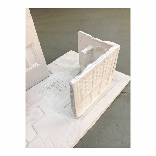 Architecture can be seen as an extension of our skin, since it cares the potential of protection. In the work ‘Third Skin’ I construct a utopic safe space as a metaphor to democracy, referring to ancient Greek polis. This sculptural assembly recollects architectural forms of brutalism architecture intermixed with bourgeois post imperial pathos and builds up in the middle a place for a voice, a dialogue and a common discourse resembling a classical agora. Through creating half closed half opened space, I demonstrate something what usually remains in private together with what is tend be common.