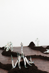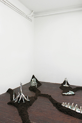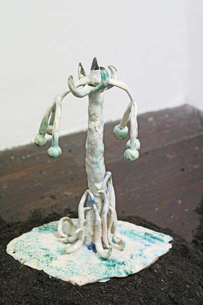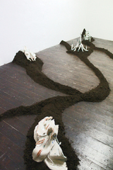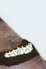 Soil symbolizes the inexperienced and unfulfilled potential which got frozen in the past on the one hand and the new beginning and a fruitful ground for the future beginning. In a way the space of a former flowers cellar cares a metaphor of a portal between past and present, manifesting the uncertain place of contemporaneity.