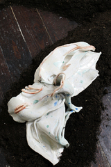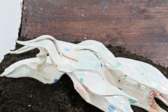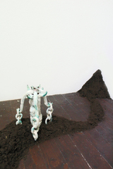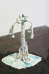 Ceramic sculptures are Bochkova’s fantasies and models of amusement parks of her childhood in post-soviet Russia, through reconstruction of her memory she recaptures the familiar forms but in a changed condition, former carousels developing hypertrophied chains, wheels are getting deconstructed and replaced.