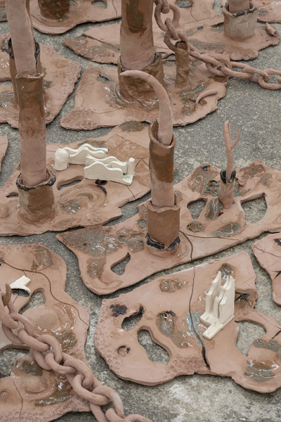 ‘vulnerable dawn’ of ceramic human figures, which communicate with flowers and organic elements.