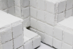 These aspects find a reflection within Anna Bochkova’s sculptural intervention. Silent Places is an archive on its own, showing algorithms of suburban landscapes in different post socialist countries: the absolute silence of panel construction quarters which are situated in suburban areas. The quality of the utopian concept of socialism which stayed there is the silence of unspoken fears, the silence of point on no return, the silence of unfulfilled desires and hopes.