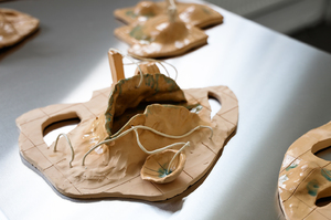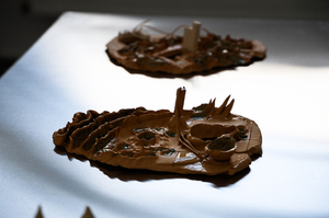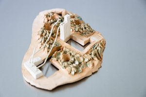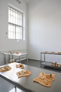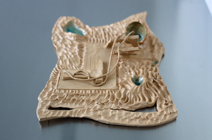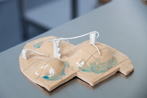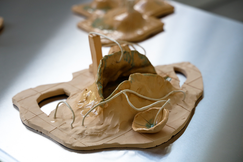 The model scale sculptures, embodying my thoughts, are made of ceramics. They present non-existing conceptual places, which are situated somewhere in between biosphere and technosphere and pose the question: How do humans interact with nature? What is the nature of humans?