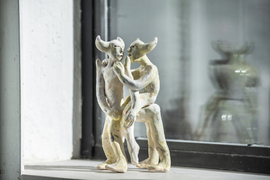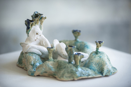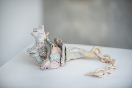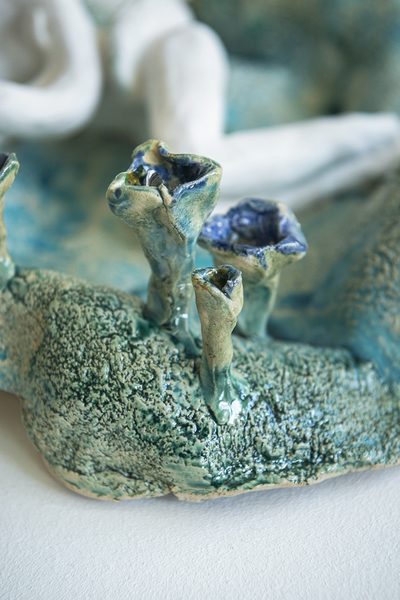 Anna Bochkova, on the other hand, with her imaginative language and poetic visceral, transports us into a universe of intimate and profound emotions. Her works, rich in symbolism, explore the border between inner and outer reality, between dreaming and waking. Her figurative, sometimes surrealistic approach prompts the viewer to question the invisible forces that shape our existence, inviting us to explore unknown dimensions of the mind and soul. The artist explores themes related to utopia, the future, healing and society, observed through the lens of personal narratives, often intertwined with stories of diaspora. Her works, which include sculpture, drawing and installations, invite critical reflection and open to dialogue, stimulating the imagination of alternative realities. Using materials such as papier-mâché, ceramics, textiles, metal and paper, she creates conceptual spaces in which in which human and non-human beings interact, taking care of each other, within fictional and, in equal measure, futuristic worlds. Her practice feeds on of theoretical research, often inspired by philosophers and leading figures from Eastern Europe and the former Soviet Union, exploring themes related to future absolute equality and alternative forms of communication. Revisiting these concepts in a contemporary context, the artist, through the perspective of an intimate personal mythology, Bochkova creates contemplative spaces that expand the collective imagination collective imagination of possible, hopefully better future worlds.