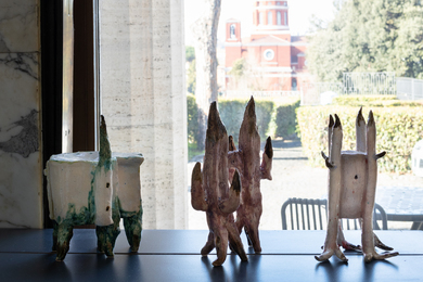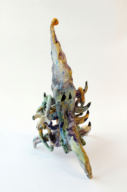 Ceramic pieces of Anna Bochkova continuing her research towards witch’s refuge from mythology and fairy tales. These houses are taking an inspiration from a Slavic mythological folklore- witches house on chicken legs.